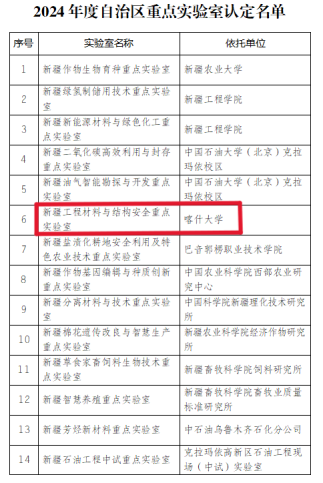 2024年10月21日,自治区科技厅公布2024年度自治区重点实验室认定名单,我校土木工程学院申报的“新疆工程材料与结构安全重点实验室”获批成为自治区重点实验室。