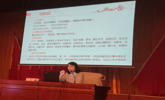 罗志佳教授从国家社科基金与教学、学科、人才和发展的关系入手,从明确新态是起点、吃透政策是前提、精心选题是关键、深耕表格是根本、遵守规范是保障等方面介绍了国家社科基金申报的规范和技巧,分享国家社科基金项目申报的经验和注意事项。