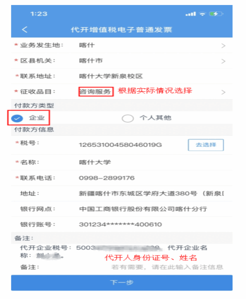 第七步、按要求填写信息。(注意:联系地址请填写开票人自己的联系地址)