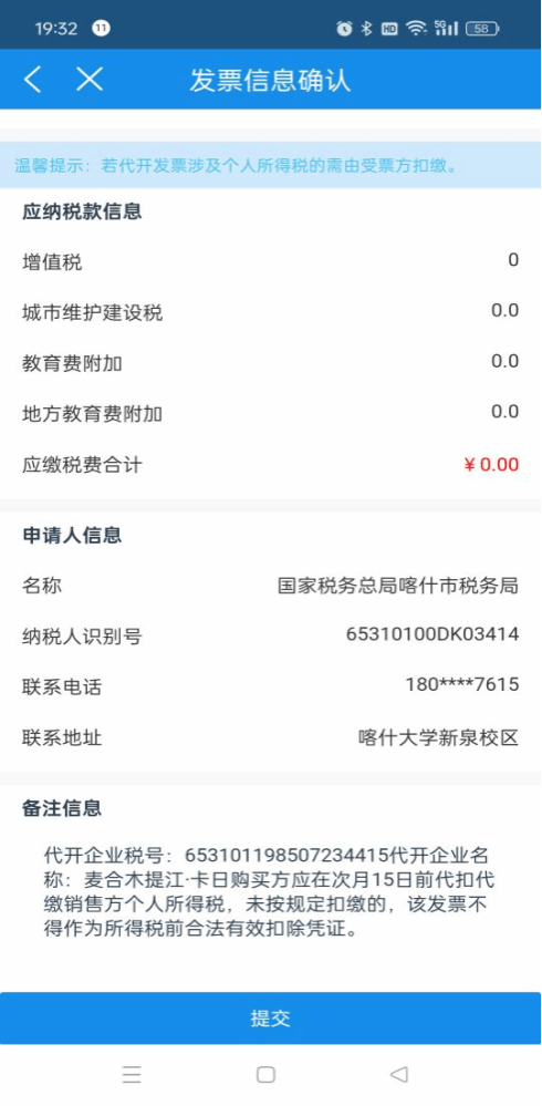 第七步、按要求填写信息。(注意:联系地址请填写开票人自己的联系地址)